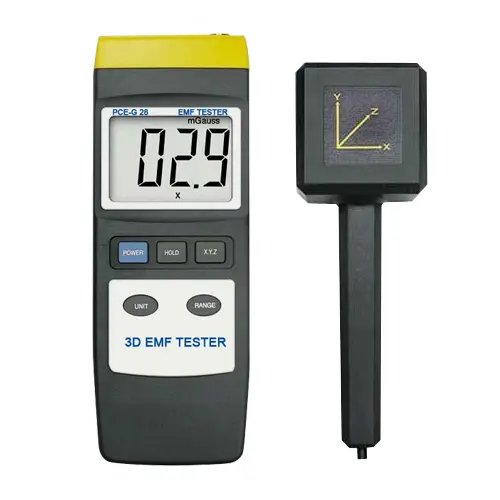 Alan şiddeti ölçüm cihazı PCE-G28’de elektromanyetik radyasyonu tespit etmek için 3 eksenli ölçüm probu bulunur. Alan şiddeti ölçüm cihazı kullanılarak transformatörlerde ölçüm gerçekleştirilebilir ve bilgisayar monitörleri, televizyonlar, endüstriyel tesisler tarafından üretilen manyetik alanları değerlendirilebilir. Alan şiddeti ölçüm cihazı, Avrupa standartlarına (Avrupa Birliği Elektromanyetik Uyumluluk Yönetmeliği IEC 801-1 (EN 50081-1) ve laboratuvar ve ölçüm teknolojisi IEC 204 standartlarına (EN 60204) uygundur.
